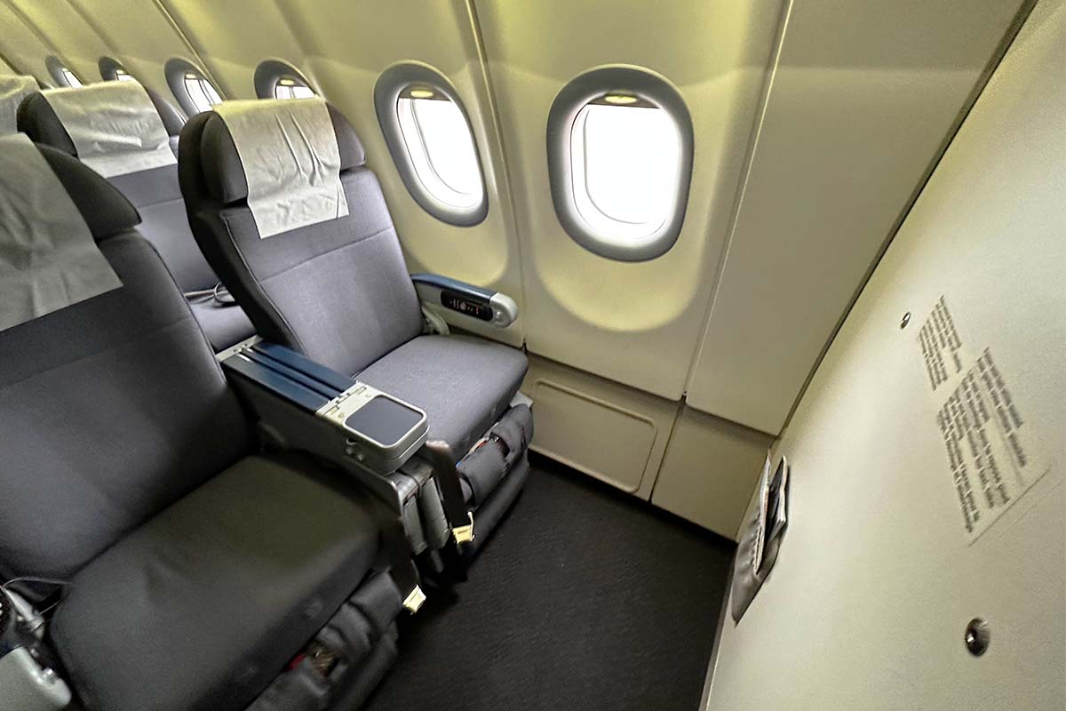 チケット購入時はエア・グリーンランド保有のA330-800のシートマップで有償座席指定していたのですが、オンラインチェックイン時間になると前方のプレミアムエコノミー席が開放されていました。最初、2-3-2配列の理解ができなく、検索していると上記の事情が判明しました。エア・ベルギーのサイトでシートマップを確認し、比較すると同一でした。