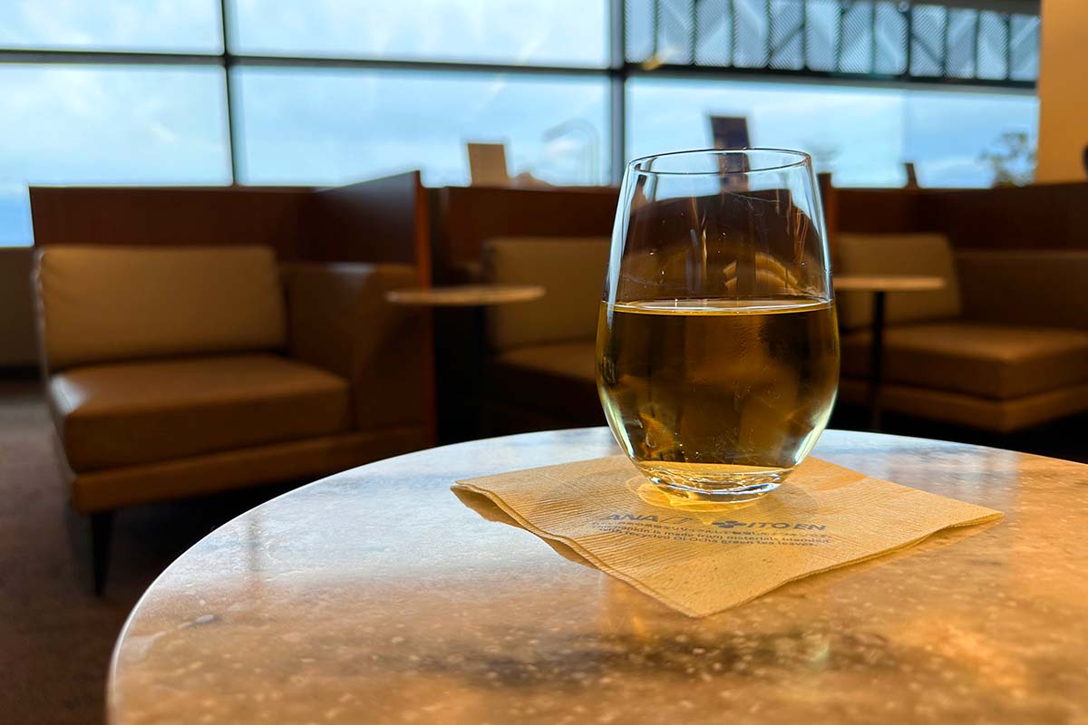 ラウンジでは、上質な空間でリラックスできるように配慮されており、心地よい椅子に座りながら、ワインを楽しみました。高級感漂うインテリアと落ち着いた照明に包まれて、日常の喧騒を忘れることができました。