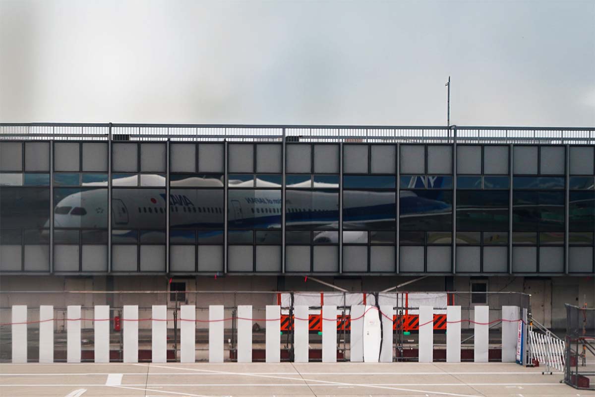 動き出すとターミナルのハーフミラーにその長い機体が映し出されます。今回搭乗した飛行機はボーイング787-10型機と言う、国内線では4機しか導入されていません。ちなみに国際線では3機導入されています。