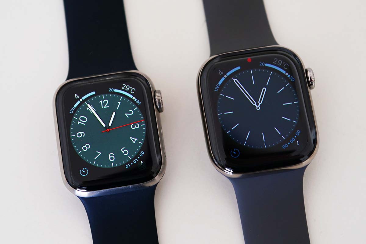 実物を同じ文字盤で比較してみます。やはり表示領域が広くなっています。当然、ベゼルが狭くなっている効果も有ります。写真では伝えにくいですが、やはり1mmの薄さは結構インパクトがあり、肌に吸い付く感じであります。