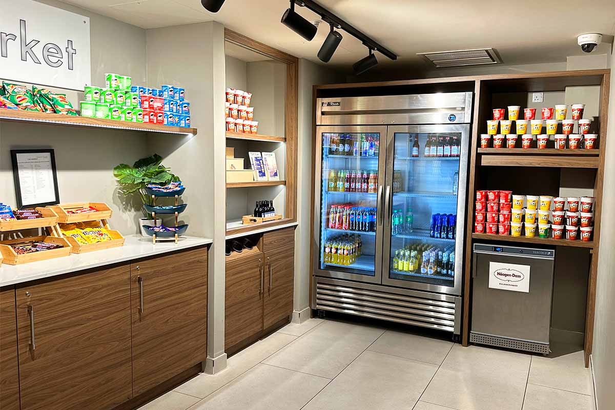 レセプション横にはミニマーケットがあり、ビールやプロセッコ、赤ワインなどもありました(180ml)。また、ハーゲンダッツも置いていました。ここでプロセッコを買って、あとはそのまま部屋で過ごすつもりでしたが、先述のとおり、スーパーに行くこととなりました。