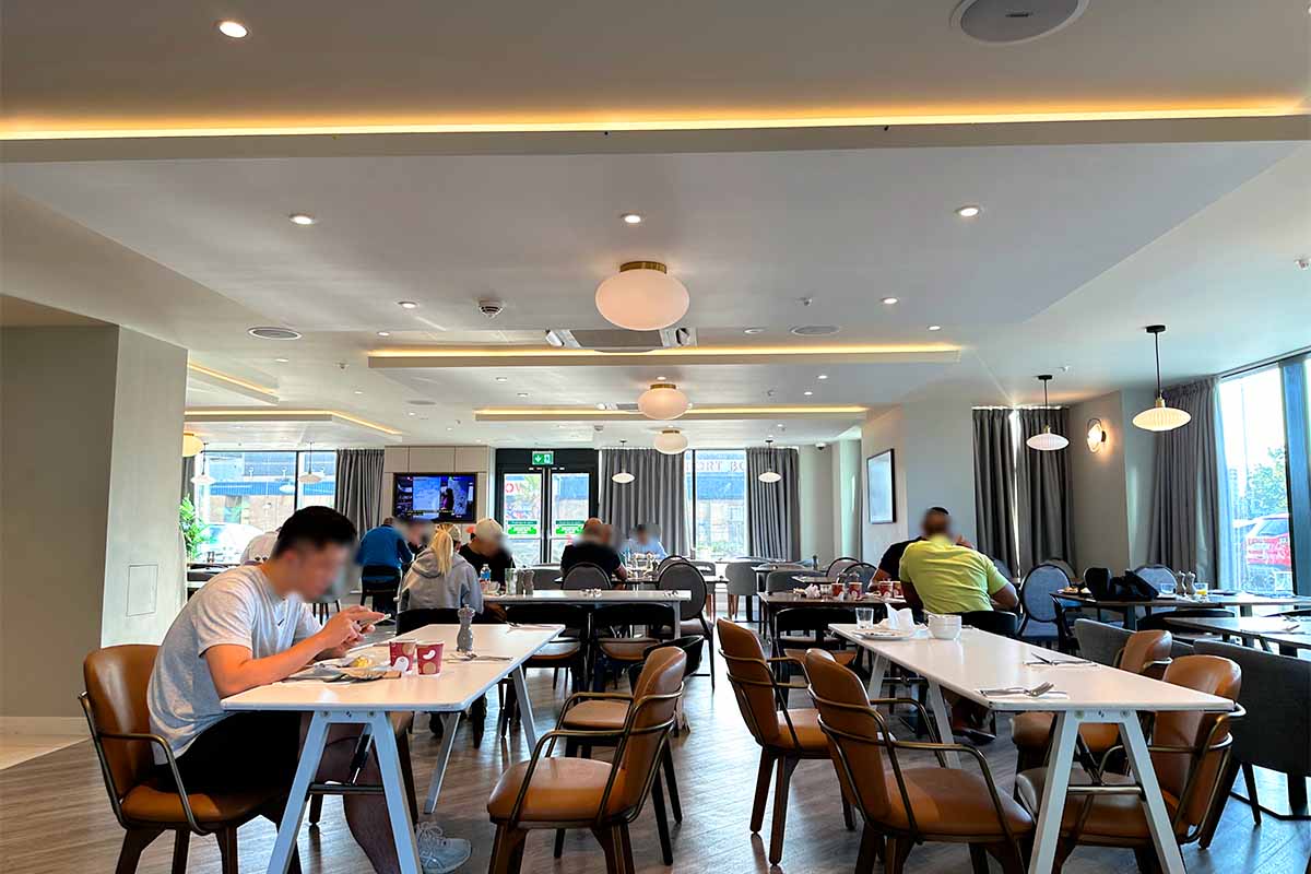 空港近くで、スマホにて事前に空港からの動線を理解していれば、それほどアクセスは困難でなく、チェックアウト後も市内に行ったり、LHR(ロンドン・ヒースロー空港)に戻ったりするのも便利であります。