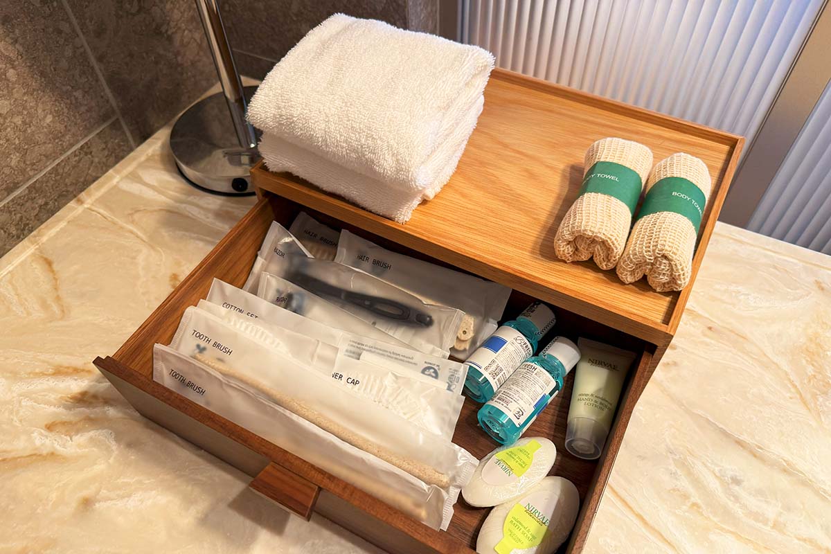 一方でアメニティはぬくもりのある木製のボックスに収められています。うーんなかなか好印象です。