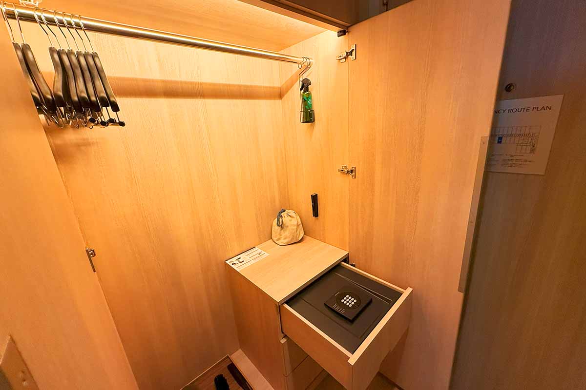 クローゼットは結構広めであります。セーフティーボックスも大きめです。フェアフィールドはクローゼットがないので、ここもコートヤードという感じです。