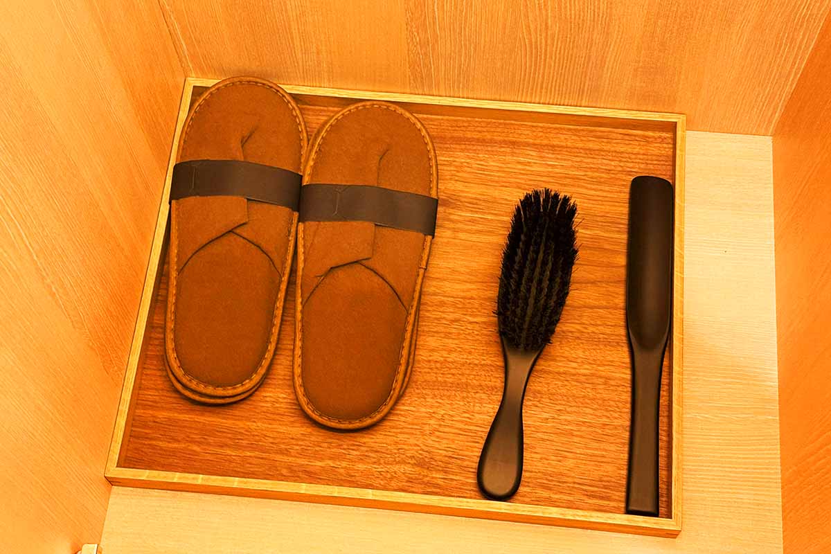スリッパについてはプレミアムクラスのスリッパ色ではなく、シートを想起させる茶色であります。基本的には全てがそろっています。