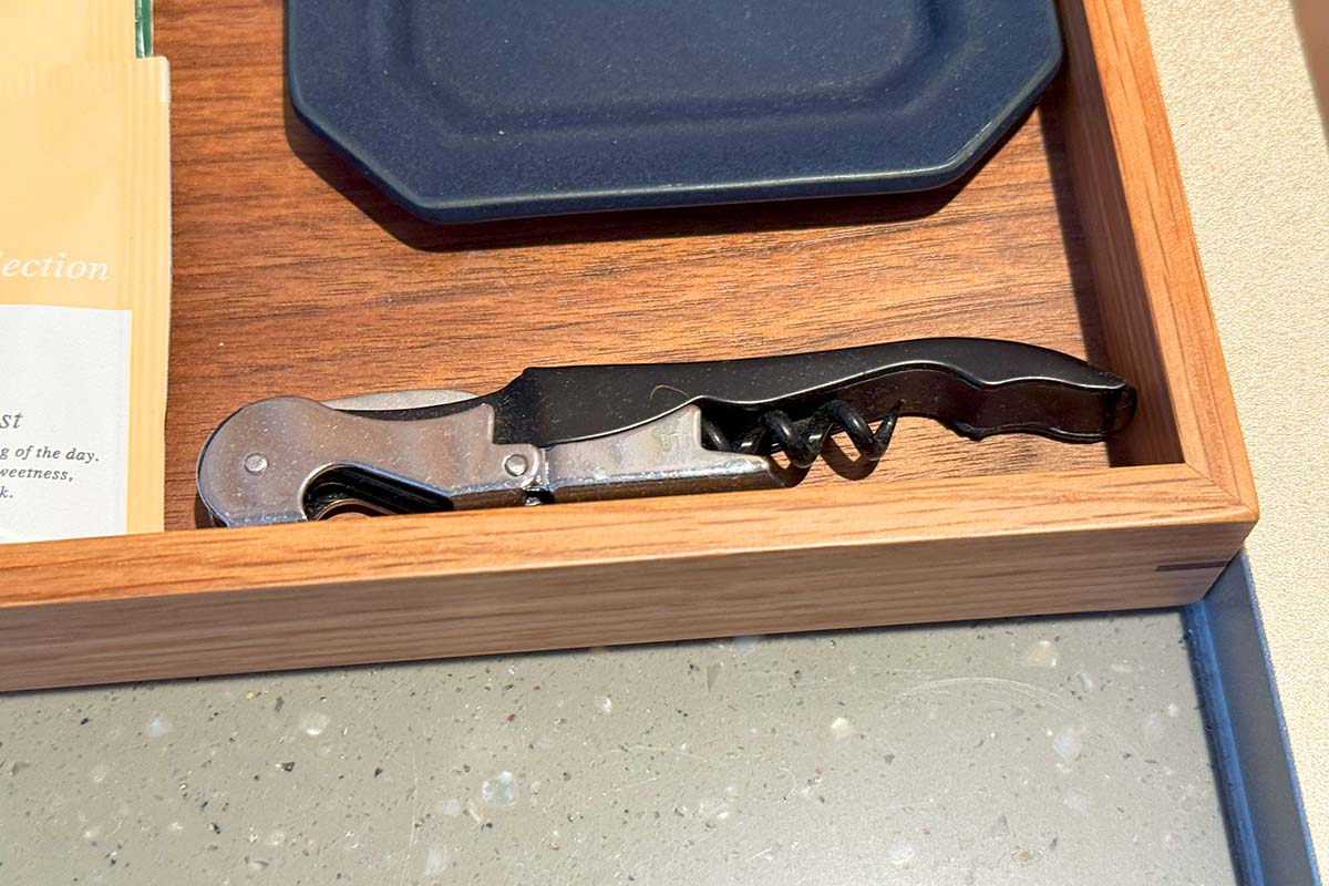 アメニティに関してフェアフィールドと変わらないくらいシンプルではあります。ワイングラスはありませんでしたが、ソムリエナイフはありました。フロントに電話すればワイングラスも用意してくるかもしれません。まあ、面倒なのでグラスでそのまま飲みましたが。