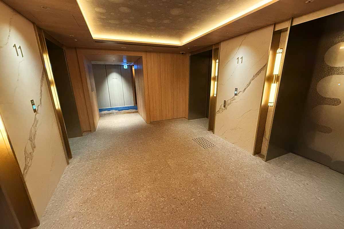 エレベーターはカードキーを翳すと自分の部屋のフロアに自動的に連れて行ってくれます。ダブルクリックで消えるかは試しませんでした。
