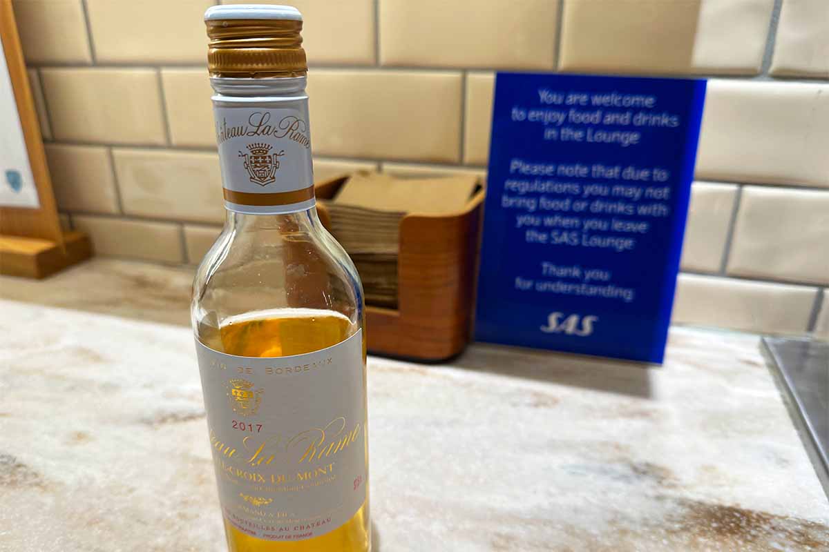 ボルドー産のワインも有りました。市場価格は1,700円ぐらいでした。こちらは濃厚でトロっとしていますが、甘みがあるのでアイスクリームにかけたら結構おいしい感じでした。同ラウンジではアイスクリームは有りませんが。