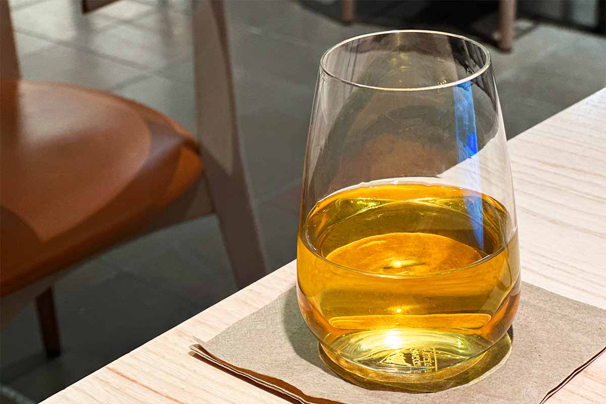 甘いのは苦手なのでやはり、すっきりした辛口に変えてしまいます。ANAラウンジ風にステムレスのグラスに注いでしまいます。結局はボトル1本分ぐらいは飲んでしまいます。