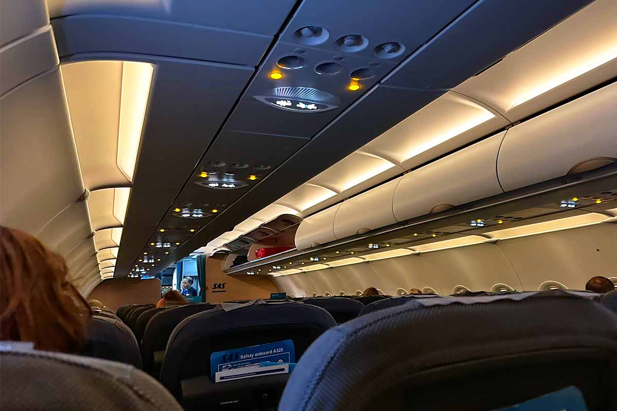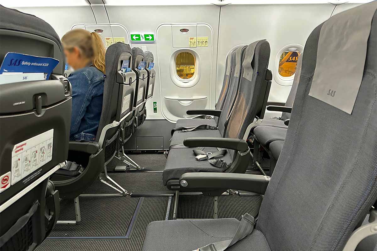 機材は記事最初の写真のとおり、A320neoであります。スカンジナビア航空は機材の更新が著しく、結構、新しい機材が多い印象であります。シートは昔とあまり変わらない印象でありますが、やはり新しいです。