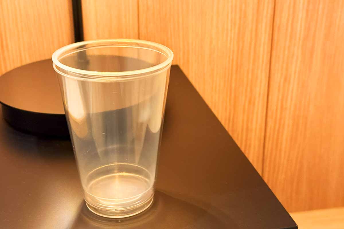 相変わらず、グラスは洗面にある街中華のようなコップでしたので、今回は大きめのプラカップを持ち込みました。