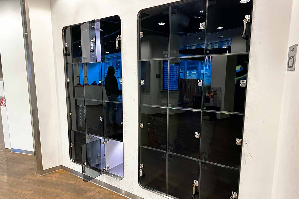 ラウンジを入ると受付横にキー付きのロッカーがあります。結構利用されており、リモワのスーツーケースが多いのはドイツらしいと言ったところでしょうか。