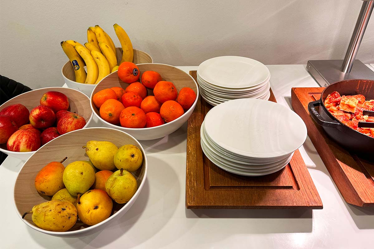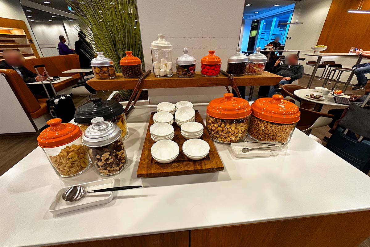 続いては、フードドリンクコーナーであります。ルフトハンザのラウンジと言うとシンプルと言うか豪華でないと言うかというイメージがある食事やドリンクですが、現在はどうでしょう。
