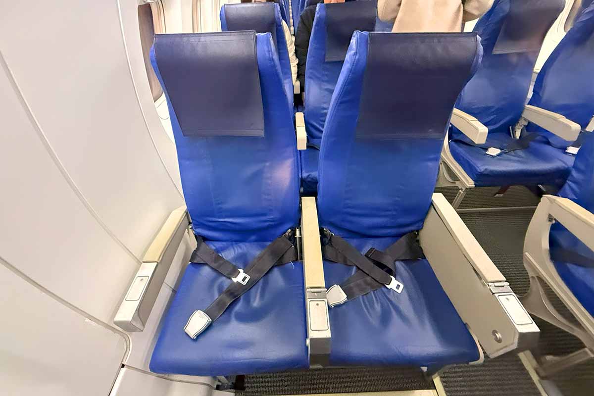 座席は最前列の2A席であります。反対側は座席は以前の機材と同じくお見合い席であります。