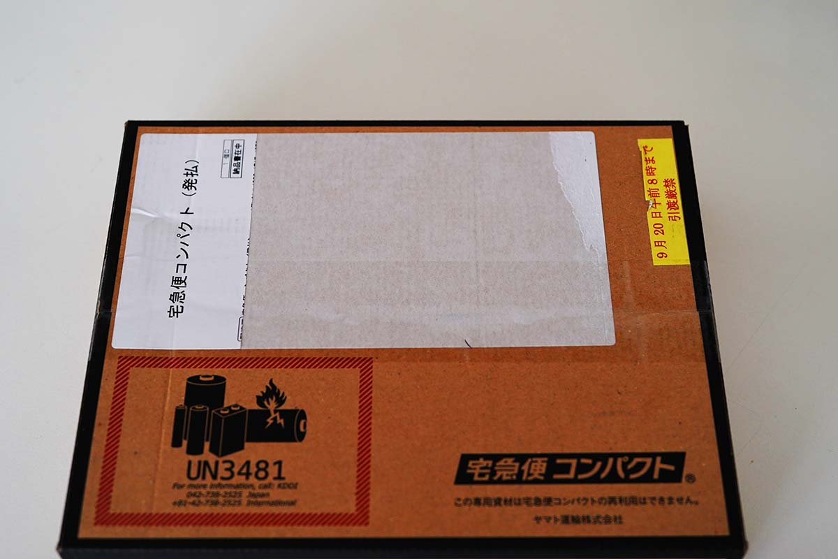 そして、12時ピッタリにドアホンがなり、念願の発売日到着となりました。宅急便コンパクトでした。よく見ると9月20日午前8時まで引渡厳禁と張り紙がしてあります。