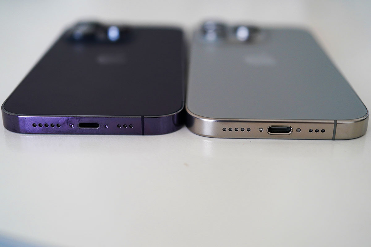 iPhone14 Proと比較してみます。わずかに長く幅はほとんど変わりません。レンズ配置も同じであります。見た目は同じなので買い替えるのはと思ってしまうくらいです。