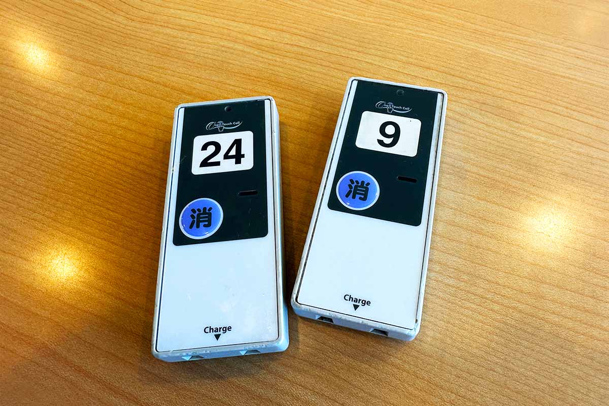 ということで、お昼にあわせて、ワインが飲みたかったので、店舗は別々ですが、それぞれ注文するとそれぞれ、呼び出しバイブが渡されます。どっちがどっちかわからなくなります。数字はなかなか不吉な数字でしたが。
