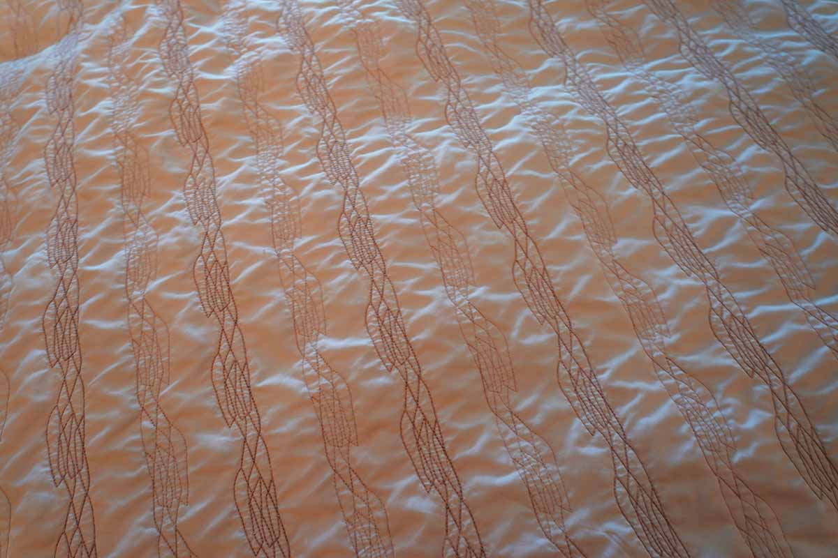 ベッドの上に紙のガイドやルームサービスメニューであります。ベッドカバーは立体的な織りのものであり、肌触りが良いです。個人的にはまっさらなシーツも大好きですが。