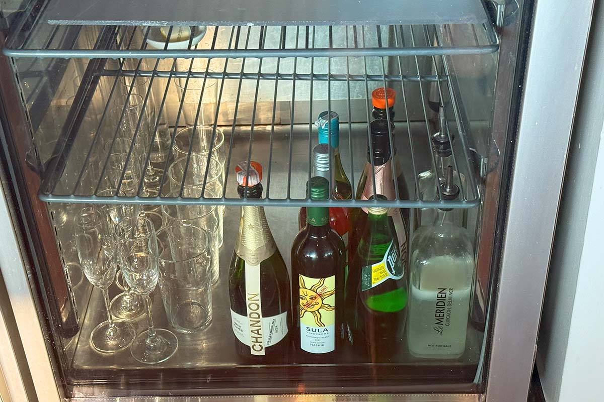 グラスもワイングラスも複数種類あり、ミニバーリストにはワインもあるのであるかなと思い、冷蔵庫を開けてみます。