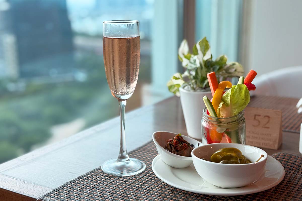 まずはシャンドンのロゼからです。付け合わせは野菜スティックとハラペーニョピクルスであります。ここのピクルスも辛く、ワインが進むところであります。