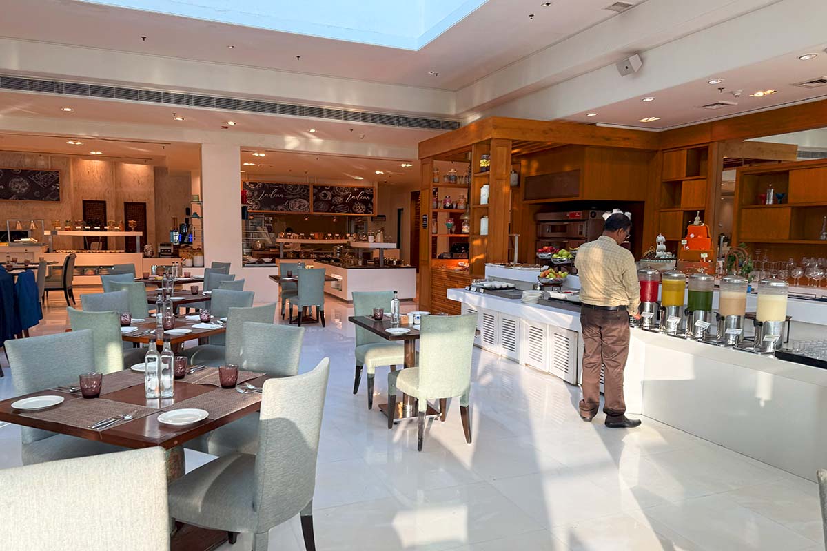 レストランは1階のレセプションの横にあります。日曜の朝はインドでは静かであり、大きなレストランはさらに拍車をかけます。