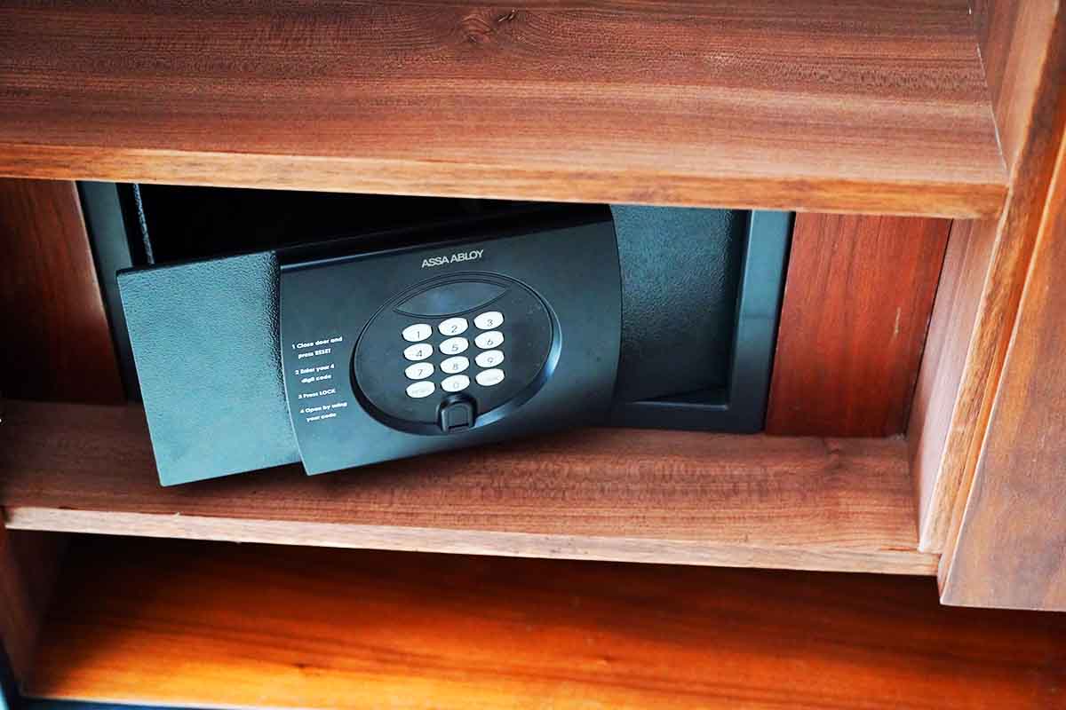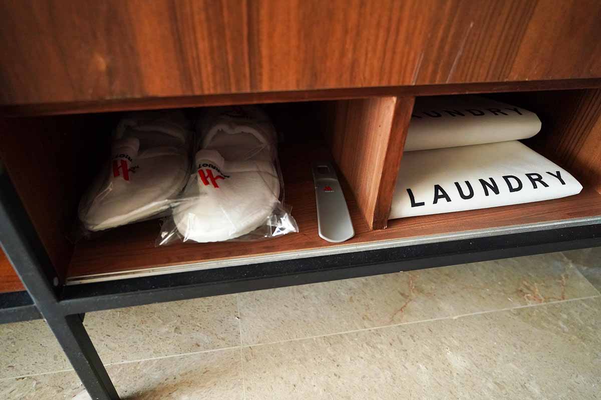 スリッパにはMも文字が刻まれています。ランドリーバッグもあり、ここはマリオットであります。セーフティーボックスは13インチのPCも格納可能であります。