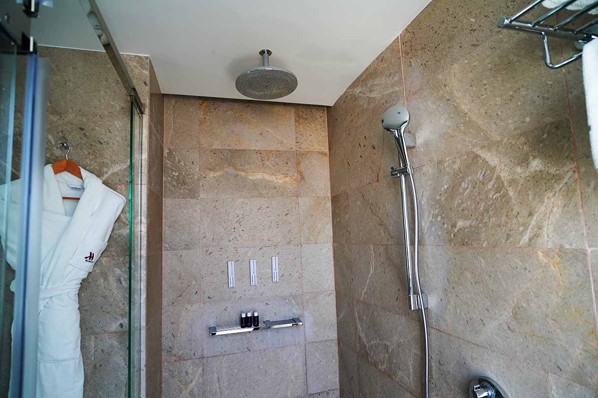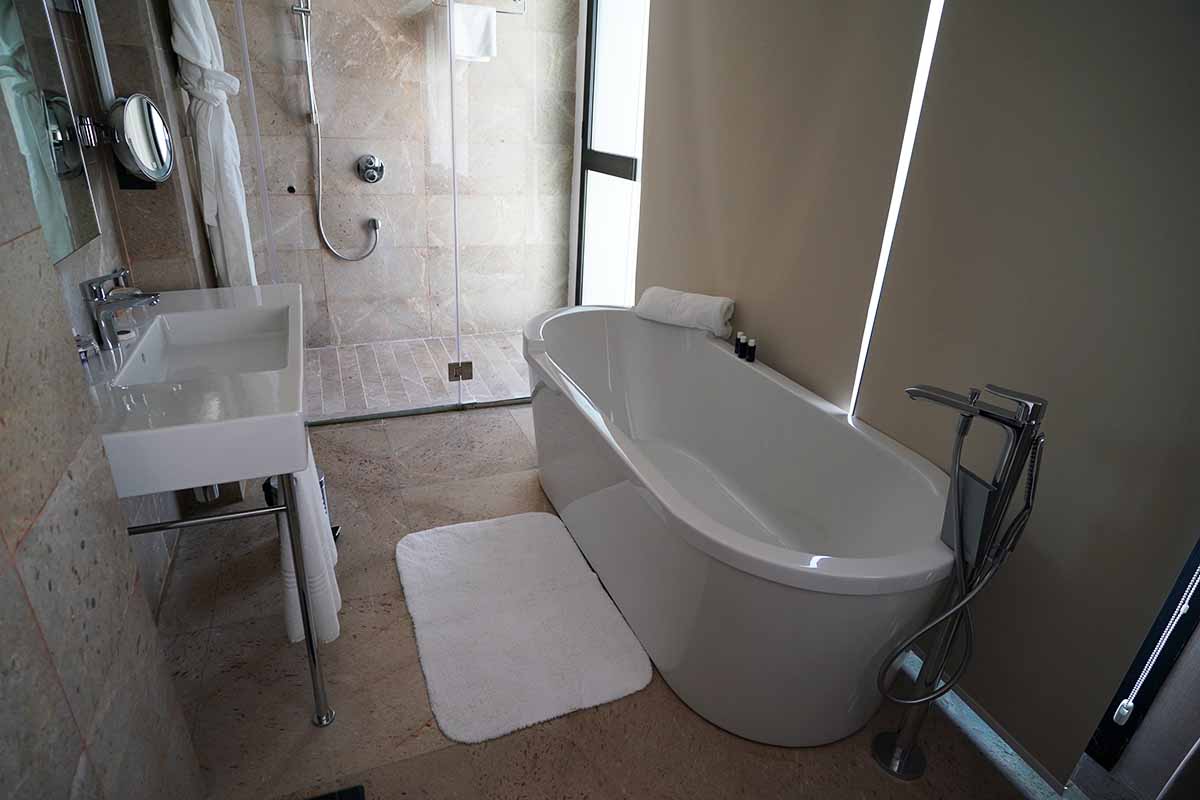広さと設備は十分であり、窓一面で明るく、大理石ではありますが、スイートとしては何かと思ってしまいます。水流は良いですが、水捌けは今一でした。