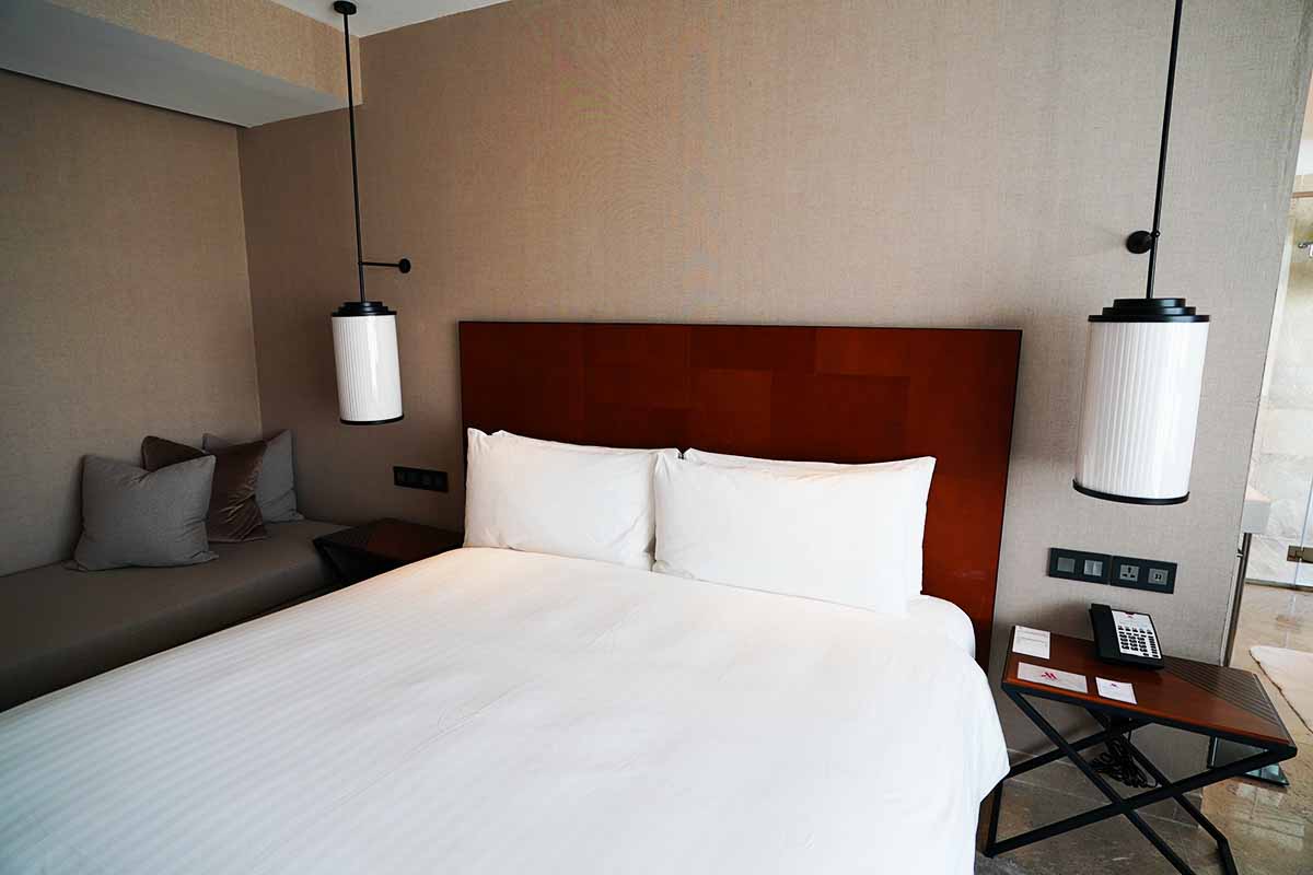 ベッドはキングサイズであります。ポイント泊ではとてもお手頃なマリオットであるので、不満はありません。部屋は古くもなく、モダンなので快適であります。