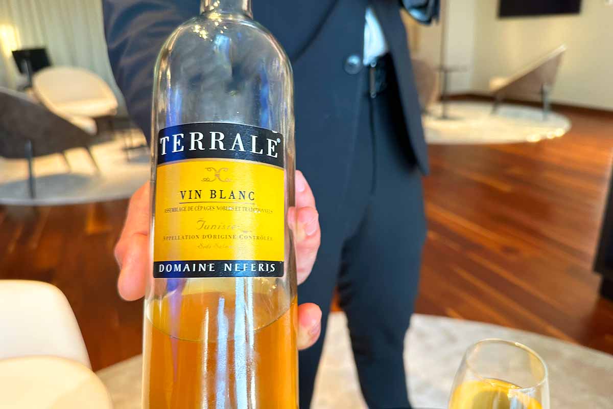 ワインは赤白泡でありますが、いずれもチュニジア産でした。白は白と言うか琥珀色であり、酒の度合いが強いどっぷりした感じでした。アフリカのワインはなかなか珍しいところでもあります。