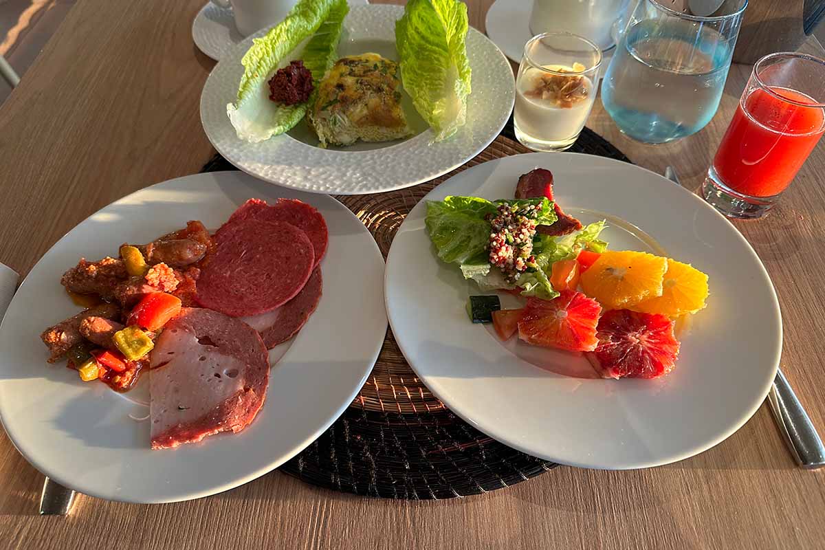 と言う事で、生野菜もタンパク質も充実であります。もちろん、卵はお好みで調理してもらえました。生野菜も充実しており、旅先で不足になりがちなところもカバーできました。