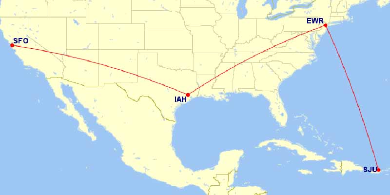 また、この路線は往復では片道の単価よりもメリットがあるため、サンフランシスコまではANAで行き、プエルトリコ間は同路線を使うと言うのも良いかもしれません。