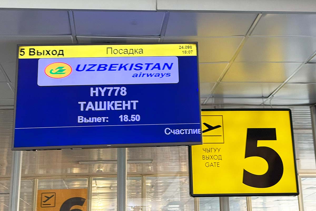 旧ソ連のようなマナス空港ですが、夕方は移動が少ないのかガラリとしています。S7航空のモスクワ行きは混んでいましたが、ウズベキスタン航空のタシケント行きは待ちなしでチェックインが出来ました。