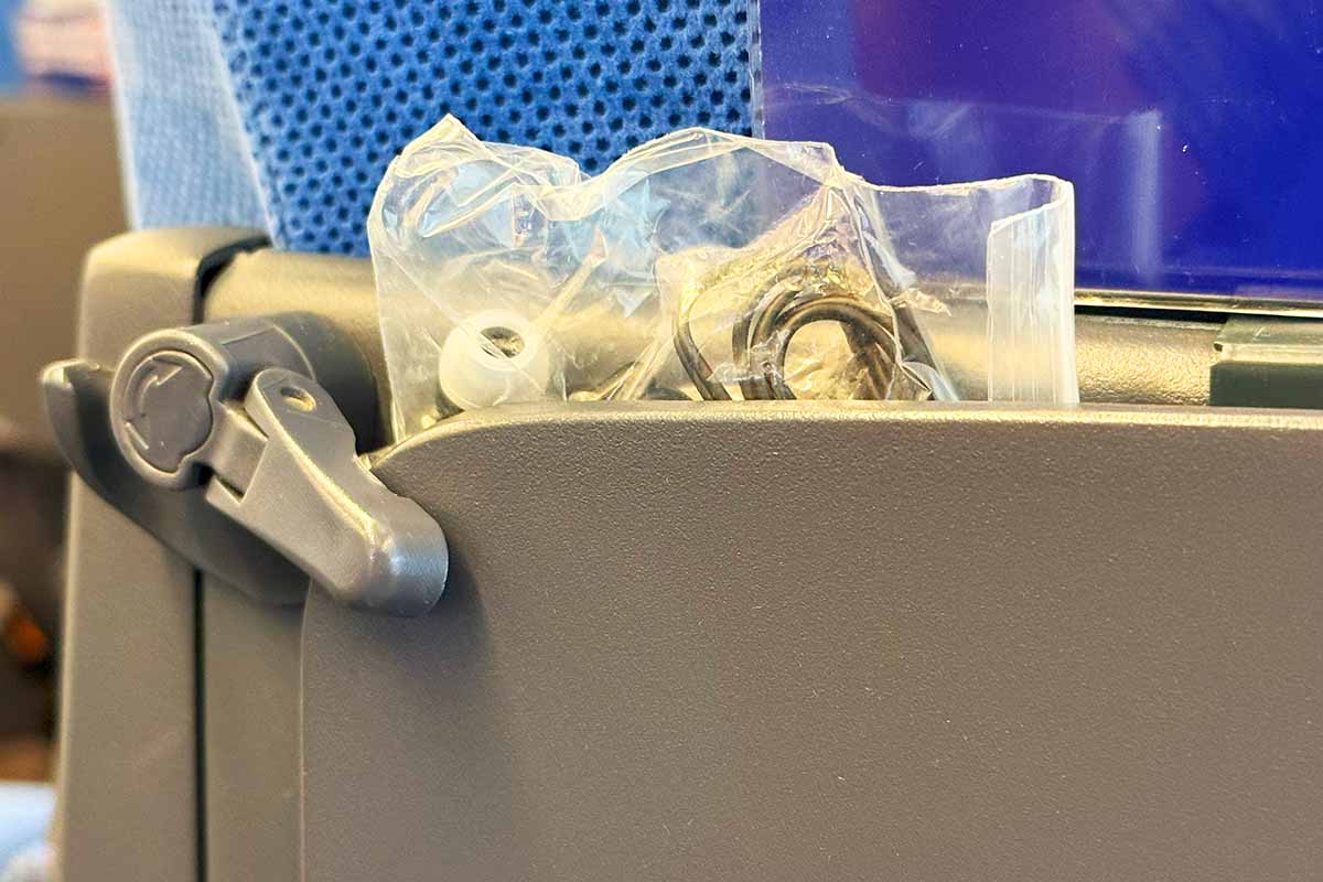 シートはモケット生地のリクライニングシートであり、配列は1-2配列となっています。シート自体はエコノミーとあまり変わらず2-2配列のエコノミーの差分はスペースがあると言うところかもしれません。