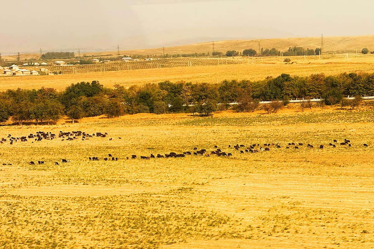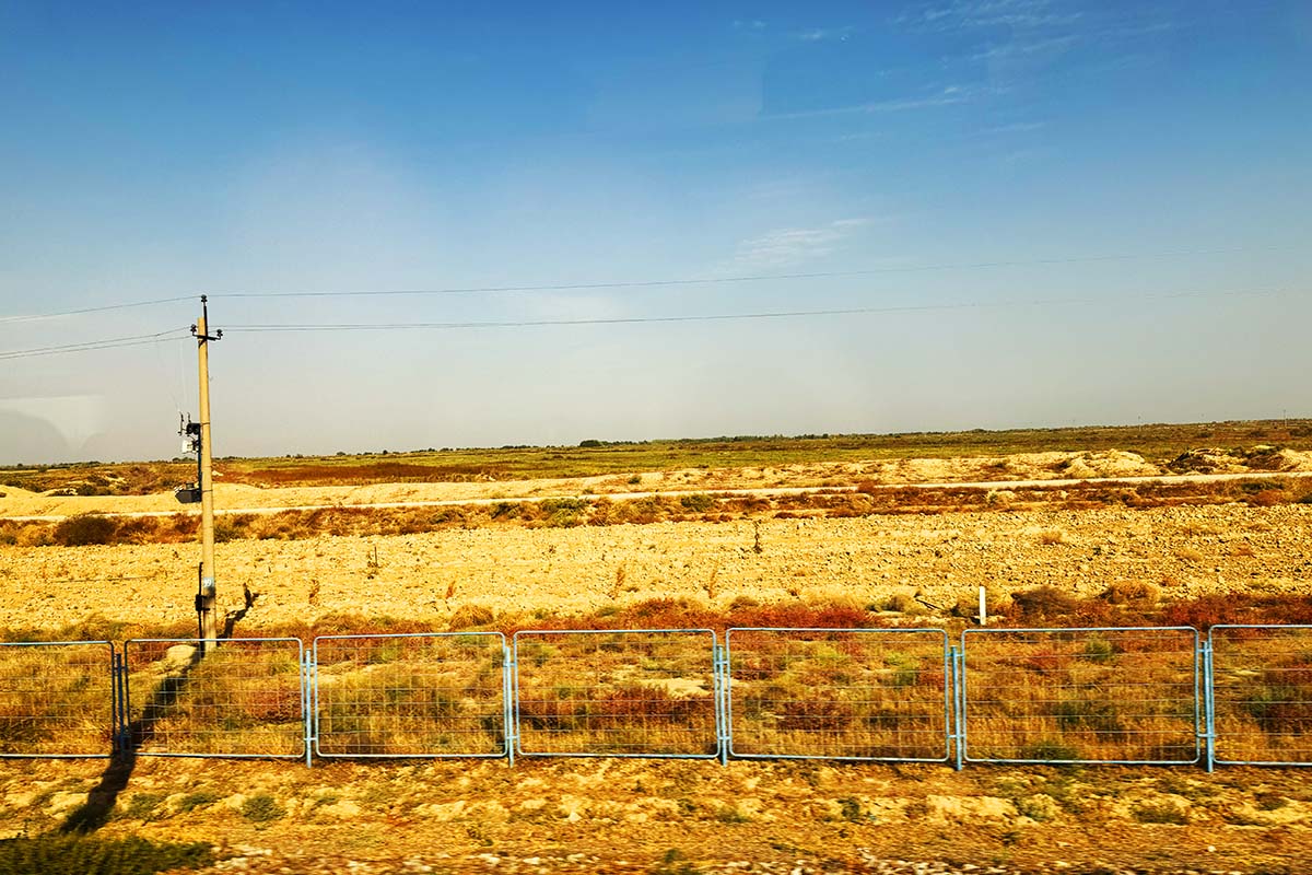 車窓はサマルカンドが近くなるにつれて少し起伏がある景色となってきました。それでも乾いた大地であり、中央アジアらしい景色が続きます。